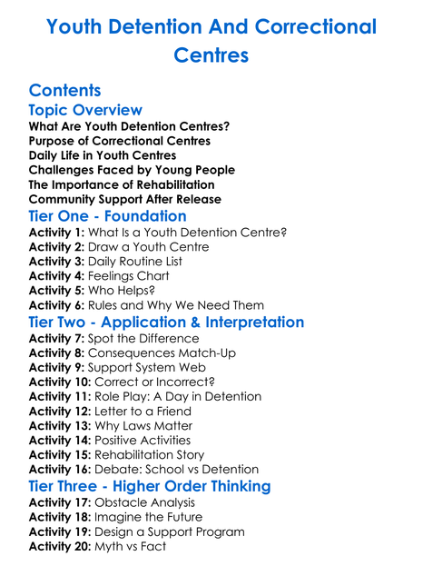 Youth Detention And Correctional Centres Worksheet Activity Booklet