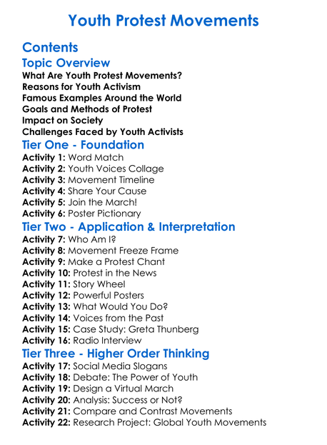 Youth Protest Movements Worksheet Activity Booklet