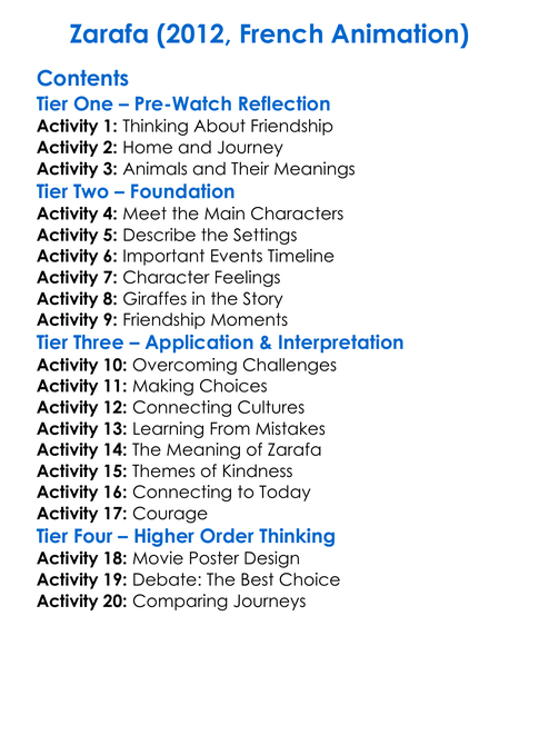 Zarafa 2012 French Animation Worksheet Activity Booklet
