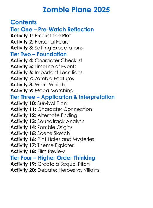 Zombie Plane 2025 Worksheet Activity Booklet