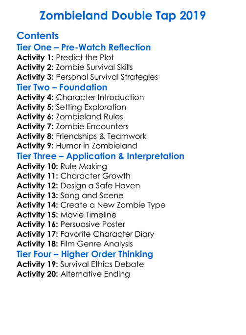 Zombieland Double Tap 2019 Worksheet Activity Booklet