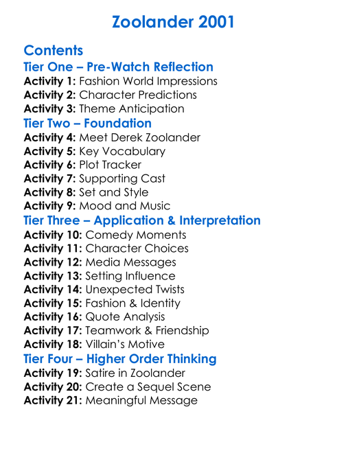 Zoolander 2001 Worksheet Activity Booklet