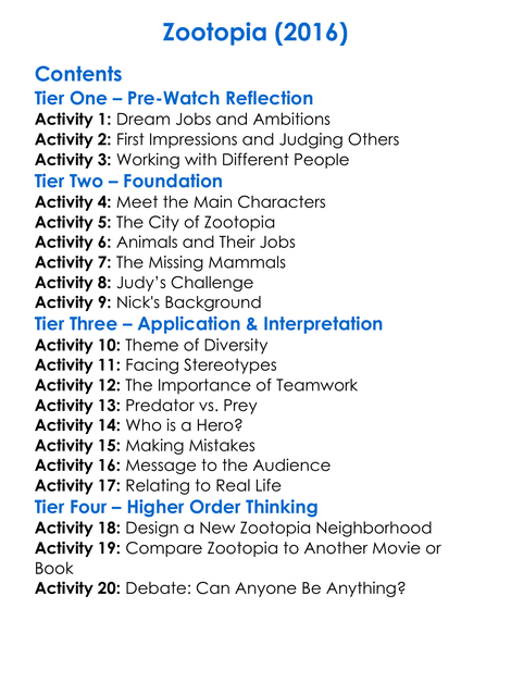Zootopia 2016 Worksheet Activity Booklet