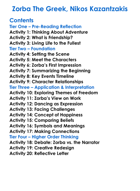 Zorba The Greek Nikos Kazantzakis Worksheet Activity Booklet