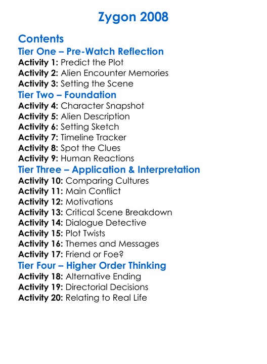 Zygon 2008 Worksheet Activity Booklet